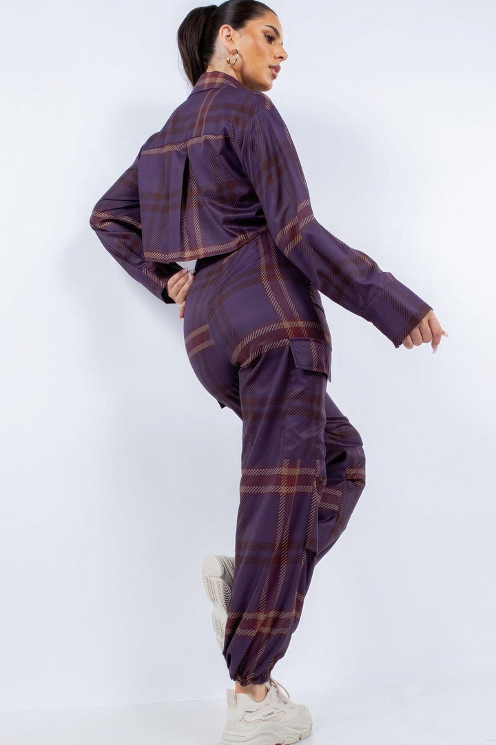 Introducing our Cropped Shirt & Cargo Pants Set—a trendy and comfortable ensemble designed to elevate your style. This set features a cropped shirt with two front pockets and wide cuffs detail, paired with mid-rise cargo pants equipped with an elastic waistband. The cargo pants also include an out pocket design and adjustable hems with toggles for a customizable look. Key Features: 1. Fabric: Immerse yourself in the luxurious feel of our set, crafted from 100% Polyester for optimal comfort and flexibility. 2. Fit: Find your perfect fit with sizes ranging from S to L, ensuring a tailored look for every body type. 3. Color: Embrace the rich and sophisticated Plum hue, adding a touch of elegance to your ensemble. 4. Cropped Shirt Details: - Two Front Pockets: Practical and stylish for added functionality. - Wide Cuffs Detail: Adds a fashion-forward touch to the shirt. 5. Cargo Pants Details: - Mid-Rise: Ensures a comfortable and versatile fit. - Elastic Waistband: Provides flexibility and ease of wear. - Out Pocket Design: Enhances the utility and style of the cargo pants. - Adjustable Hem with Toggle: Allows for a customizable and trendy look. Product Details: • Comfortable All-Day Wear: Crafted from 100% Polyester, our Cropped Shirt & Cargo Pants Set ensures maximum comfort, allowing you to wear it effortlessly throughout the day. • Quality Craftsmanship: Each piece undergoes expert stitching, meeting the highest standards of quality and durability. • Care Instructions: Maintain the set's pristine condition with our provided washing and care instructions. Why Choose our Cropped Shirt & Cargo Pants Set? Elevate your style with the perfect blend of comfort and contemporary design. This set stands out with its trendy cropped shirt and versatile cargo pants combination. Ideal Occasions: Perfect for various occasions, from casual outings to adding a fashion-forward touch to your everyday look, our Cropped Shirt & Cargo Pants Set in Plum is a versatile and stylish choice. Customer Reviews: • "Absolutely love my set! The fit is perfect." - J. M. • "The cargo pants are so stylish, and the adjustable hem is a great feature." - A. S. • "Comfortable and chic—I've received so many compliments!" - K. L. Size Guide: For accurate sizing guidance, please review our size chart available on the website. Shipping and Returns: • Fast Shipping: We offer speedy delivery to your doorstep. • Hassle-Free Returns: If you're not completely satisfied, our flexible return policy ensures your peace of mind. Add our Cropped Shirt & Cargo Pants Set in Plum to your cart now and experience the perfect blend of fashion and comfort! Cropped Shirt & Cargo Pants Set