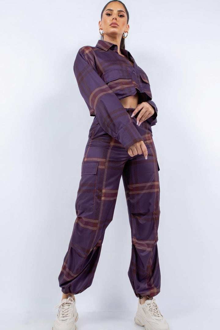 Introducing our Cropped Shirt & Cargo Pants Set—a trendy and comfortable ensemble designed to elevate your style. This set features a cropped shirt with two front pockets and wide cuffs detail, paired with mid-rise cargo pants equipped with an elastic waistband. The cargo pants also include an out pocket design and adjustable hems with toggles for a customizable look. Key Features: 1. Fabric: Immerse yourself in the luxurious feel of our set, crafted from 100% Polyester for optimal comfort and flexibility. 2. Fit: Find your perfect fit with sizes ranging from S to L, ensuring a tailored look for every body type. 3. Color: Embrace the rich and sophisticated Plum hue, adding a touch of elegance to your ensemble. 4. Cropped Shirt Details: - Two Front Pockets: Practical and stylish for added functionality. - Wide Cuffs Detail: Adds a fashion-forward touch to the shirt. 5. Cargo Pants Details: - Mid-Rise: Ensures a comfortable and versatile fit. - Elastic Waistband: Provides flexibility and ease of wear. - Out Pocket Design: Enhances the utility and style of the cargo pants. - Adjustable Hem with Toggle: Allows for a customizable and trendy look. Product Details: • Comfortable All-Day Wear: Crafted from 100% Polyester, our Cropped Shirt & Cargo Pants Set ensures maximum comfort, allowing you to wear it effortlessly throughout the day. • Quality Craftsmanship: Each piece undergoes expert stitching, meeting the highest standards of quality and durability. • Care Instructions: Maintain the set's pristine condition with our provided washing and care instructions. Why Choose our Cropped Shirt & Cargo Pants Set? Elevate your style with the perfect blend of comfort and contemporary design. This set stands out with its trendy cropped shirt and versatile cargo pants combination. Ideal Occasions: Perfect for various occasions, from casual outings to adding a fashion-forward touch to your everyday look, our Cropped Shirt & Cargo Pants Set in Plum is a versatile and stylish choice. Customer Reviews: • "Absolutely love my set! The fit is perfect." - J. M. • "The cargo pants are so stylish, and the adjustable hem is a great feature." - A. S. • "Comfortable and chic—I've received so many compliments!" - K. L. Size Guide: For accurate sizing guidance, please review our size chart available on the website. Shipping and Returns: • Fast Shipping: We offer speedy delivery to your doorstep. • Hassle-Free Returns: If you're not completely satisfied, our flexible return policy ensures your peace of mind. Add our Cropped Shirt & Cargo Pants Set in Plum to your cart now and experience the perfect blend of fashion and comfort! Cropped Shirt & Cargo Pants Set