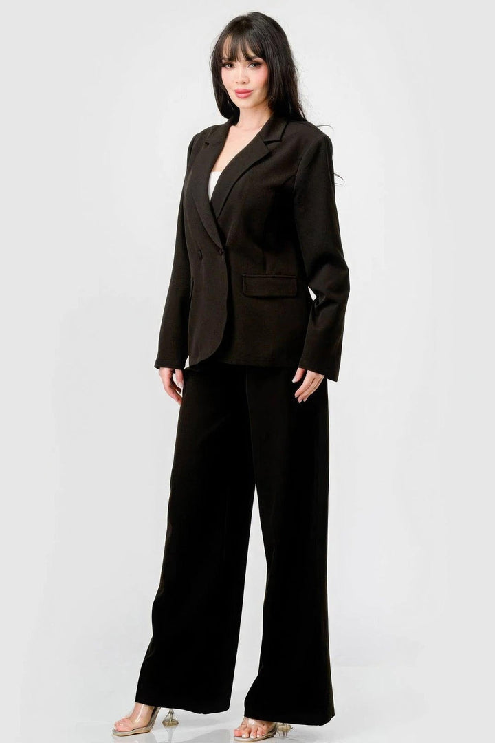 Luxe Stretch Woven Loose Fit Blazer And Wide Legs Pants Semi Formal Set