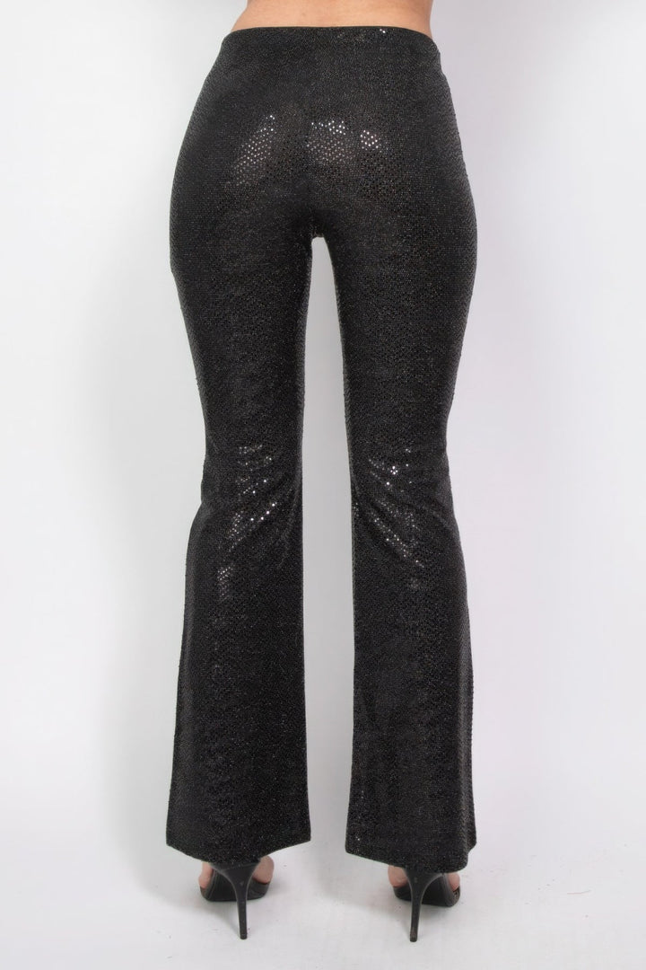 Elevate your wardrobe with our Sequined Fit & Flare Midrise Pants, a timeless piece that effortlessly combines style and comfort. Crafted with the utmost care and attention to detail, this garment is designed to make you look and feel your best. Key Features: Fabric: Crafted from 88% polyester, 6% metallic, and 6% spandex, providing a comfortable stretch and a glamorous finish. Fit: Mid-rise with an elastic waistband and flared leg for a flattering and comfortable fit. Color Options: Available in classic black. Sizes: Available in S, M, L. Design: Features dazzling sequins that add a touch of glam, perfect for making a statement at any formal event. Versatile Styling: Ideal for formal occasions, these pants can be paired with a sleek blouse or a stylish top for a sophisticated look. Product Details: Comfortable All-Day Wear: Our sequined fit & flare midrise pants are designed for maximum comfort, allowing you to wear them from morning to night with ease. Quality Craftsmanship: Each piece is expertly crafted and quality-checked to ensure it meets the highest standards. Care Instructions: To maintain the quality, hand wash cold and lay flat to dry. Avoid exposure to harsh chemicals and heat. Why Choose Sequined Fit & Flare Midrise Pants What sets this product apart is its unique blend of glamour and comfort. The mid-rise elastic waistband and flared leg offer a flattering fit, while the sequins provide a touch of sophistication that is perfect for formal events. Ideal Occasions: Perfect for formal events, parties, or special occasions. These pants add a glamorous touch to your outfit, ensuring you stand out in any crowd. Customer Reviews: "I absolutely love these pants! They are so comfortable and the sequins add just the right amount of sparkle." - Maria S. "These are my go-to pants for formal events. They fit perfectly and look so stylish." - Jessica T. "The quality is outstanding, and I've received so many compliments every time I wear them." - Emily R. Size Guide: For accurate sizing guidance, please review our size chart available on the website. Shipping and Returns: Fast Shipping: We offer speedy delivery to your doorstep. Hassle-Free Returns: If you're not completely satisfied, our flexible return policy ensures your peace of mind. Get ready to turn heads and make a statement with our Sequined Fit & Flare Midrise Pants. Add them to your cart now and experience the perfect blend of fashion and comfort! Sequined Fit & Flare Midrise Pants
