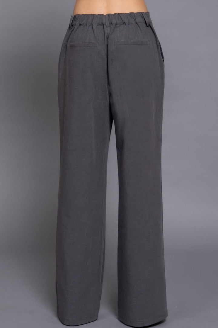 Back elastic straight woven long pants