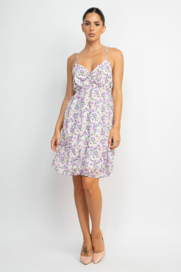 Bring a fresh and feminine touch to your wardrobe with our Double Strap Back Mini Dress. This woven floral print dress features a sweetheart neckline, flattering ruched details at the front, and an elastic waist for the perfect fit. The double strap design on the back adds a trendy twist, making this dress ideal for any occasion. Key Features: Fabric: Crafted from 96% polyester and 4% spandex, this dress offers a comfortable stretch that hugs your body and retains its shape. Fit: The elastic waist ensures a flattering and adjustable fit, while the ruched front adds texture and visual interest. Color Options: White Sizes: Available in Small, Medium, and Large Design: This dress features a sweetheart neckline, sleeveless style, and a mini length that enhances your legs. The double strap design on the back adds a unique, stylish element to the dress. Versatile Styling: Perfect for casual events, date nights, or daytime outings. Pair it with sandals, heels, or sneakers for a variety of stylish looks. Product Details: Comfortable All-Day Wear: The stretchy fabric and elastic waist ensure a comfortable fit that moves with you, while the ruched detail adds flattering shape. Quality Craftsmanship: Made with a durable polyester and spandex blend, this dress is designed for long-lasting wear and comfort. Why Choose Double Strap Back Mini Dress This dress combines chic details with comfortable design. The sweetheart neckline and ruched front add a feminine, flattering touch, while the double straps on the back give it a modern, unique appeal. The white floral print adds a fresh vibe, making this dress versatile for a range of occasions. Ideal Occasions: Perfect for brunch, casual events, garden parties, or a day out with friends. Customer Reviews: "Such a cute dress! The fit is amazing, and I love the back detail so unique!" - L. Roberts "This dress is everything! It's comfortable and flattering, and the white floral print is so pretty." - A. Harris "I wore this dress to a lunch date, and I got so many compliments. It's perfect for summer!" - K. Mitchell Size Guide: For accurate sizing guidance, please review our size chart available on the website. Shipping and Returns: Fast Shipping: We offer speedy delivery to your doorstep. Hassle-Free Returns: If you're not completely satisfied, our flexible return policy ensures your peace of mind. Add the Double Strap Back Mini Dress in White to your cart today and embrace effortless style and femininity! Double Strap Back Mini Dress