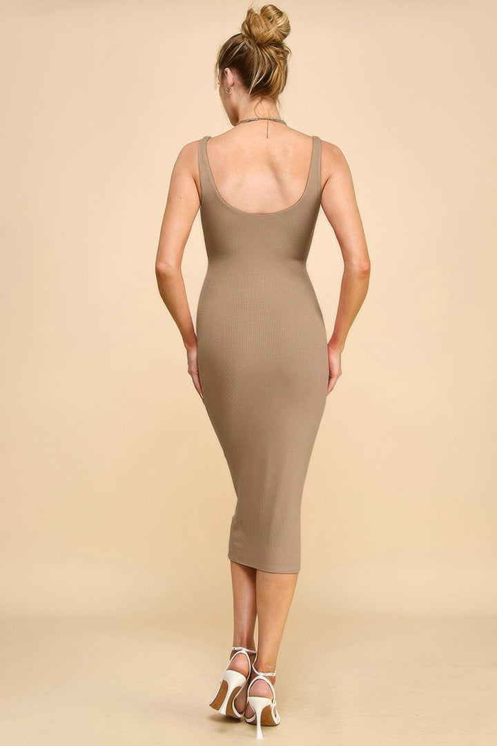 Product Description: Sleek and versatile, this scoop neck tank dress is designed to flatter with its ribbed texture and double-layered construction. Crafted from a soft blend of rayon and spandex, it offers comfortable stretch while maintaining a body-skimming silhouette. The midi length brings a polished touch, while the scoop neckline and tank-style shoulders create a clean, modern look. Perfect for transitioning from day to night, this dress pairs effortlessly with sandals, sneakers, or heels. Whether layered or worn solo, it’s a dependable essential for any season. Product Details: Made from 97% rayon and 3% spandex for softness and stretch Ribbed texture adds visual interest and structure Scoop neckline with tank-style sleeves for a clean finish Double-layered construction for added coverage and shape Midi length offers versatile styling options Ideal for dressing up or down Size Guide: For accurate sizing guidance, please review our size chart available on the website. Shipping and Returns: Fast Shipping: We offer speedy delivery to your doorstep. Hassle-Free Returns: If you're not completely satisfied, our flexible return policy ensures your peace of mind. Scoop Neck Rib Linning Double Layered Tank Dress