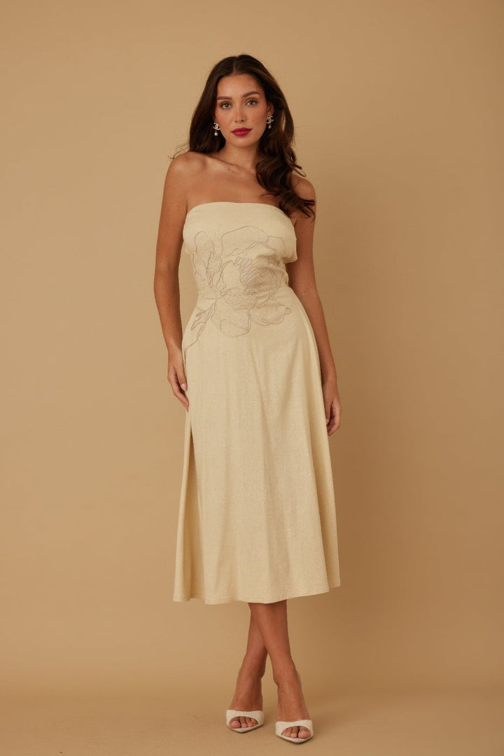 Product Description: Breeze into elegance with this flower lining linen pattern strapless dress, designed to capture the essence of effortless charm. Featuring a beautifully textured linen-look fabric, the strapless silhouette is both feminine and refined. A subtle floral lining adds a hidden touch of detail, offering a romantic surprise with every movement. The fitted bodice and softly flared skirt create a flattering shape that’s perfect for warm-weather events or garden parties. Light, breathable, and easy to style, this dress is a seasonal favorite with timeless appeal. Product Details: Strapless design crafted in a linen-look textured fabric Hidden floral lining adds a soft, romantic detail Fitted bodice with a gently flared skirt for flattering movement Lightweight and breathable—ideal for warm-weather wear Perfect for daytime events, brunches, or vacation styling Pairs beautifully with sandals, wedges, or a light shawl Size Guide: For accurate sizing guidance, please review our size chart available on the website. Shipping and Returns: Fast Shipping: We offer speedy delivery to your doorstep. Hassle-Free Returns: If you're not completely satisfied, our flexible return policy ensures your peace of mind. Flower Lining Linen Pattern Strapless Dress