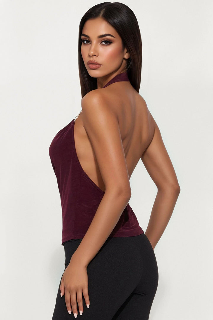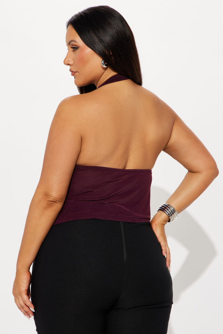 90's Sass Cowl Neck Halter Top - Burgundy