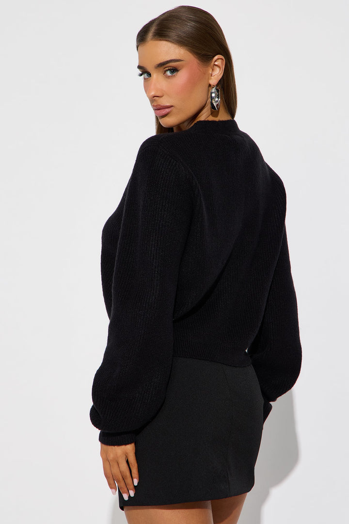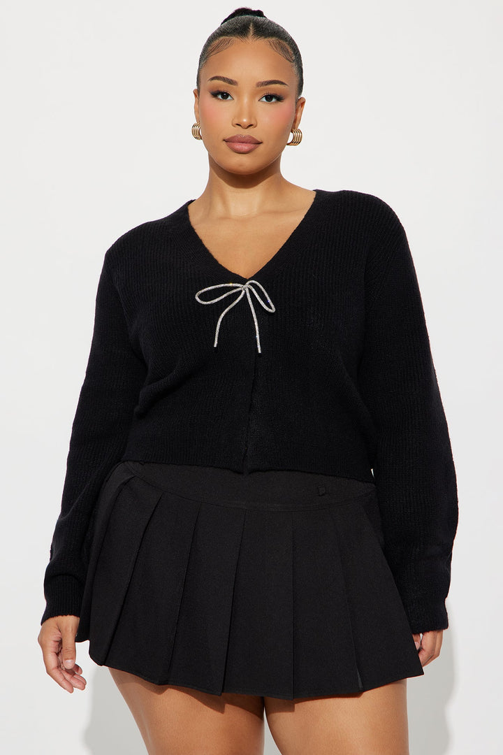 A Little Rhinestone Bow Cardigan - Black