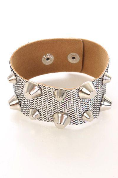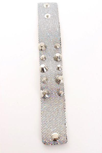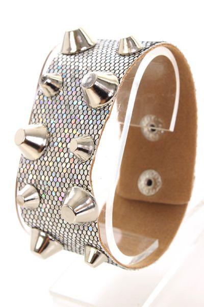 Is your look lacking a luminous luster? Try a new point of view with this glitter-hued cuff! Any way you wield the shiny textured decor of this brilliant, cuff bracelet, youll feel like a blazing beauty! This is an absolute must have adornment! Glistening with a sparkle thats as unique as you are, with bolted textured accents, sure to dazzle with a darling pair of denim pants and drape-collared top. Casually cute or positively polished, any ensemble is more illuminating with this bold-colored cuff!