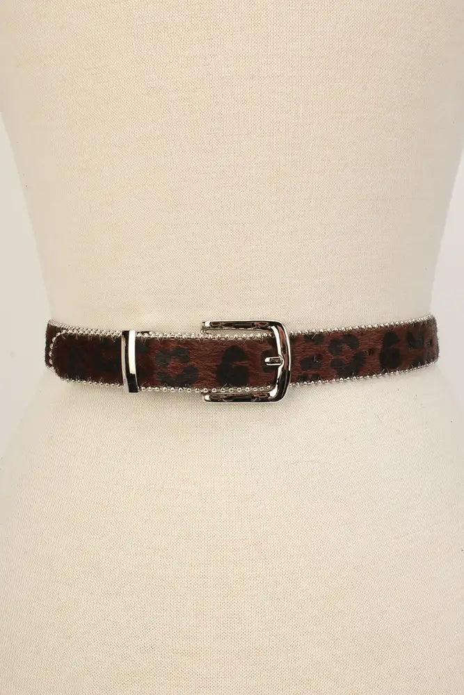 Take this bold fanny pack with you wherever you go for an eye catching look! Featuring; animal print, short hair faux fur, high polish metal detailing, o-ring detailing, beaded, adjustable belt closure, and front clasp closure. Width: 7 inches Height: 3 3/4 inches