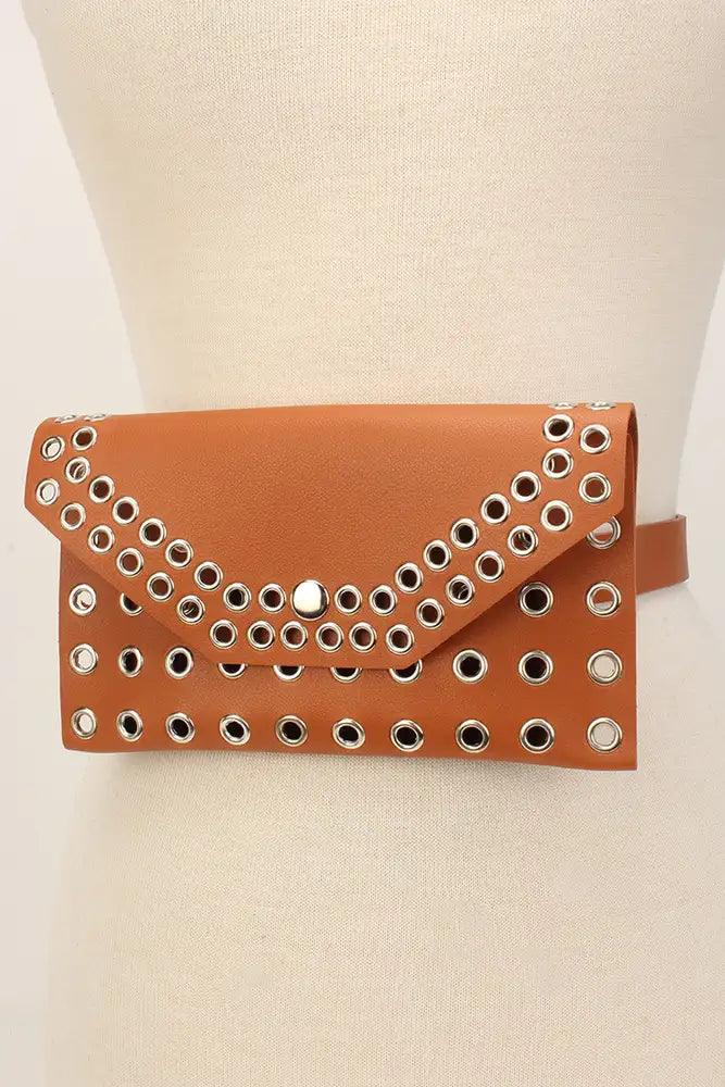 Camel Cut Out Faux Leather Mini Fanny Pack