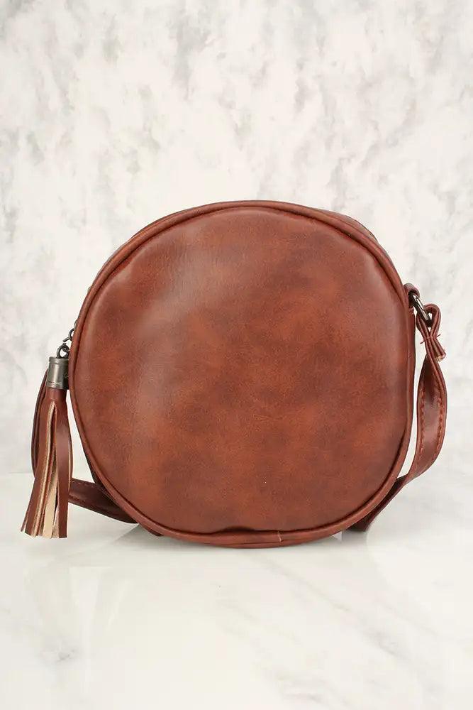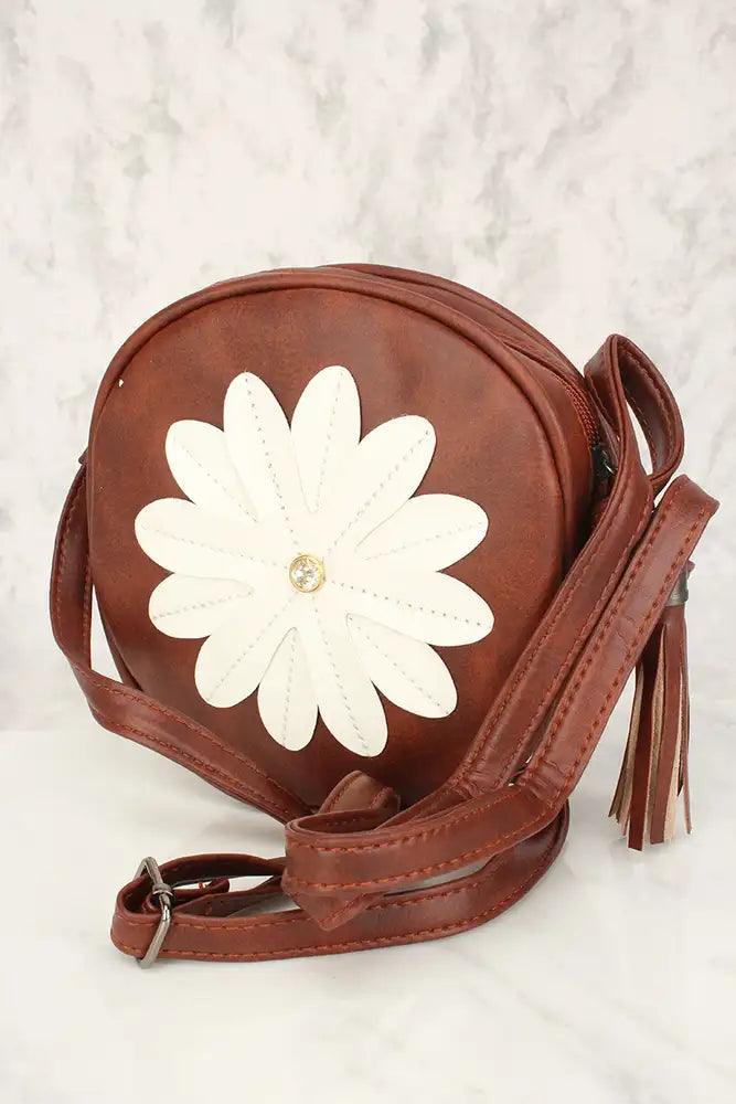 Sexy Brown Flower Patch Distressed Faux Leather Circle Crossbody Bag