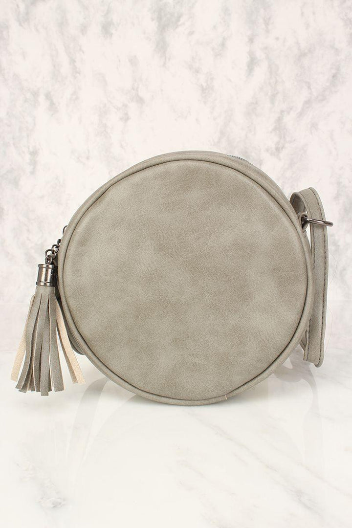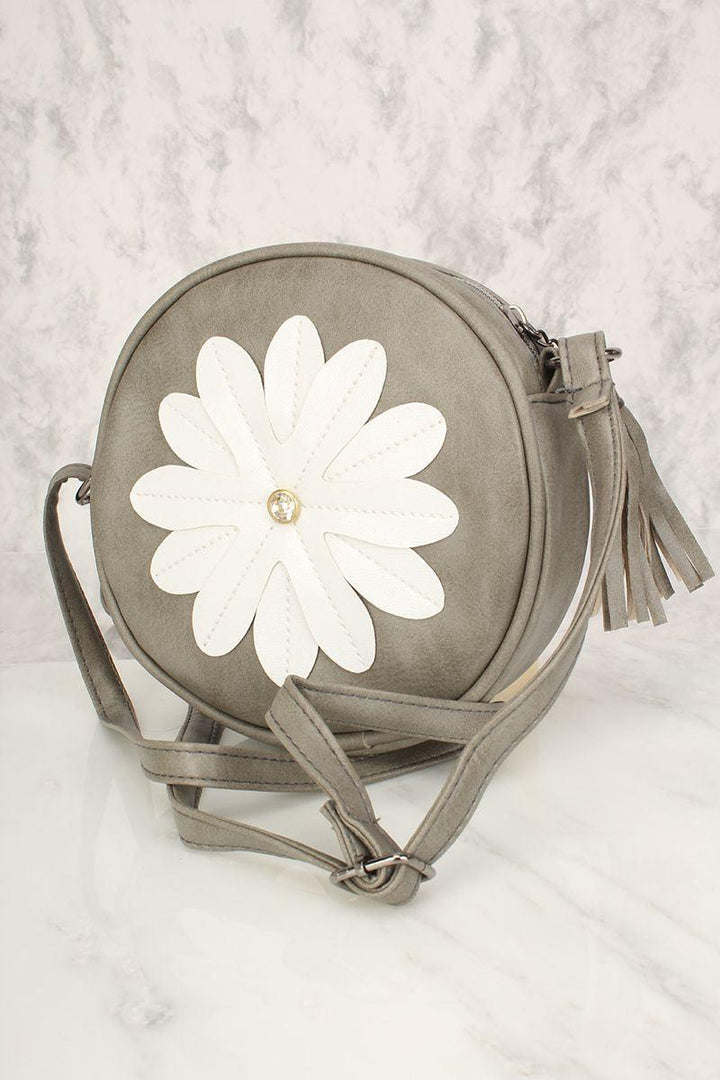 Sexy Grey Flower Patch Distressed Faux Leather Circle Crossbody Bag