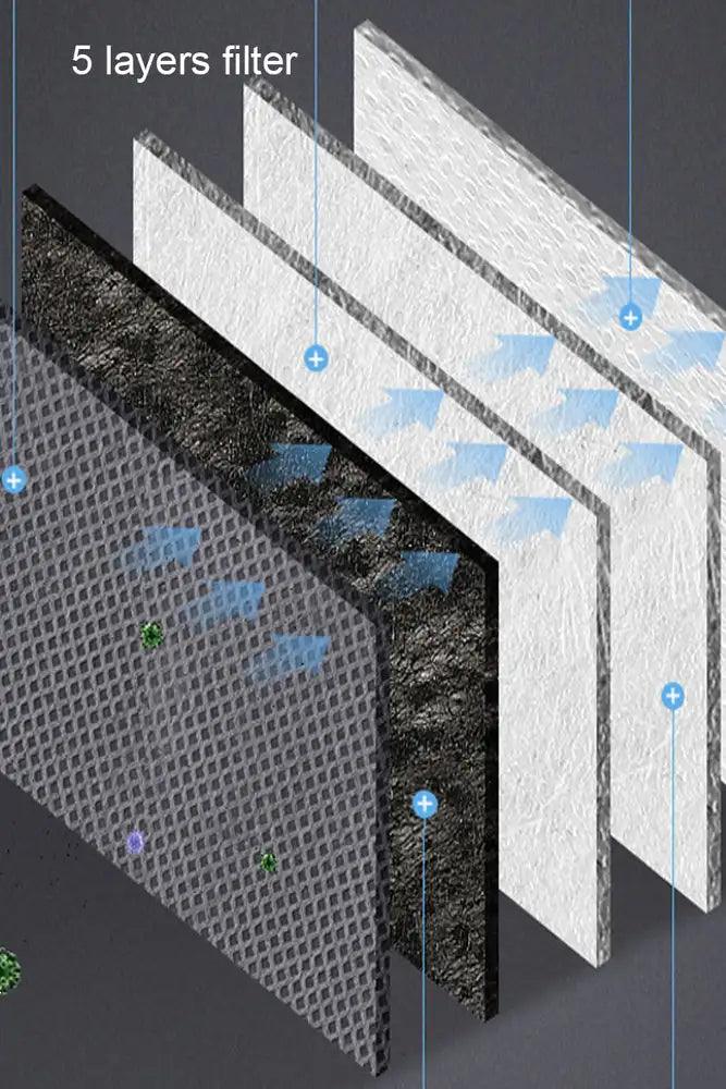 Black 5 Layer Respirator Reusable 1 Piece Face Mask