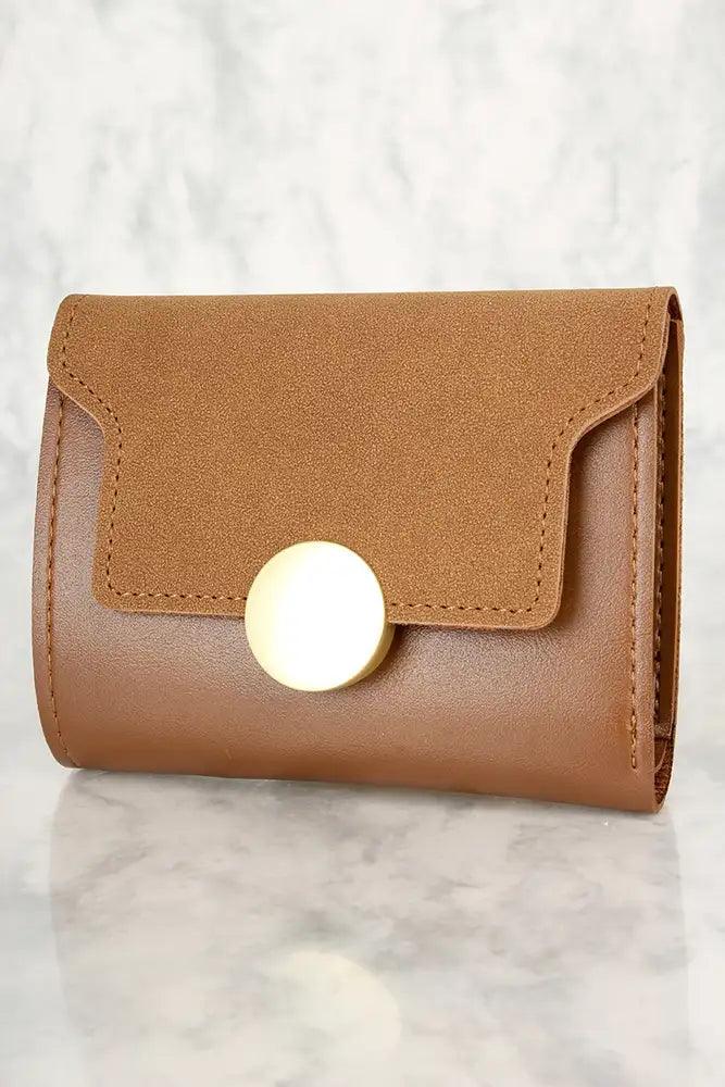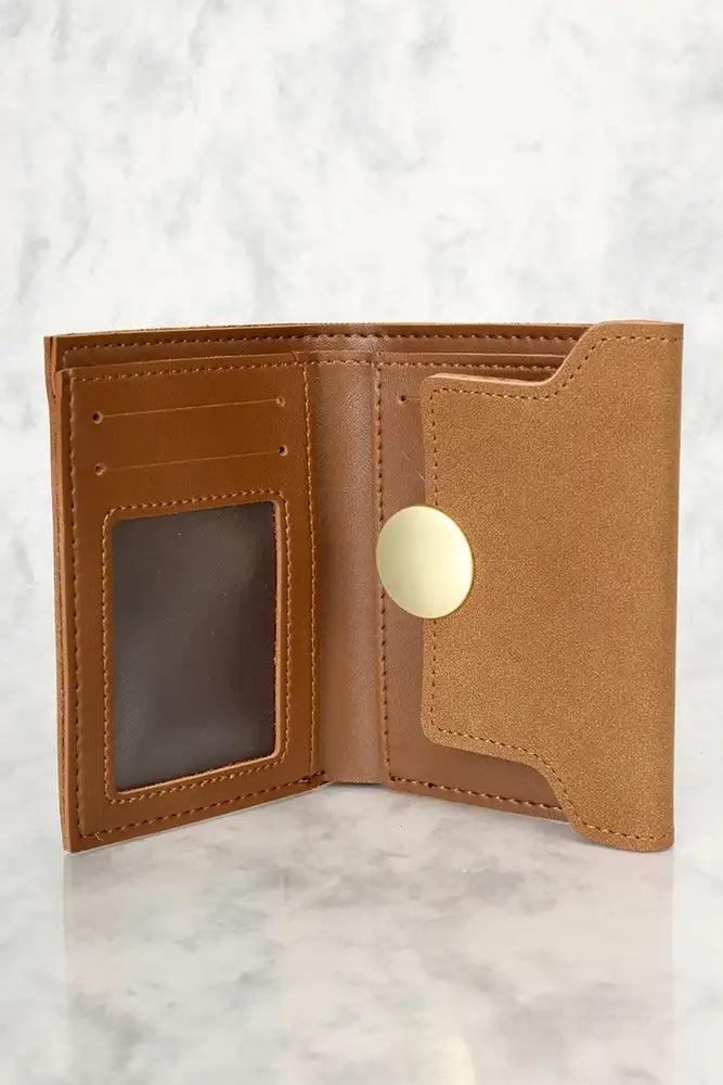 This wallet is a perfect go to for a simple look! Featuring; faux leather, textured, inner slots, front clasp closure. Width: 4 3/4 inches Height: 3 1/2 inches