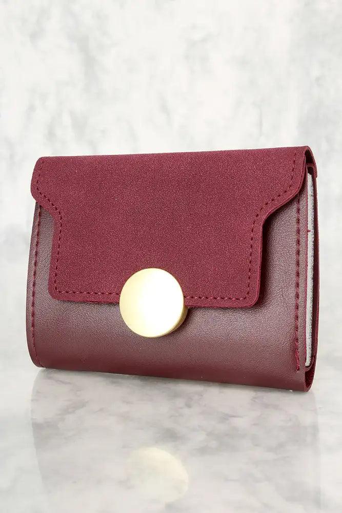 This wallet is a perfect go to for a simple look! Featuring; faux leather, textured, inner slots, front clasp closure. Width: 4 3/4 inches Height: 3 1/2 inches
