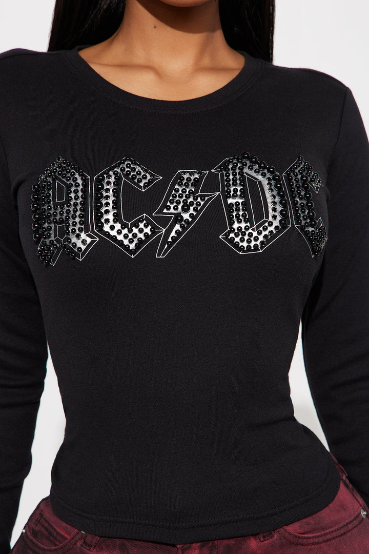 Available In Black. | Crew Neck | Long Sleeve | Rhinestone Detail | ACDC Graphic | 60% Cotton 40% Polyester | Imported