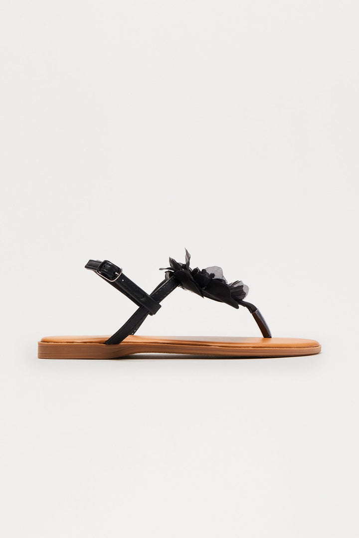 Addie Flower Sandals - Black