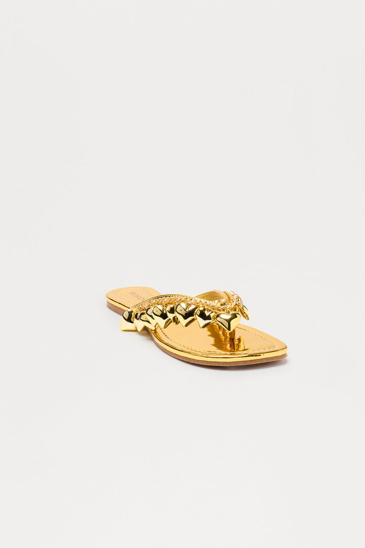 Available In Gold. | Flip Flops | Heart 3D Appliques | Round Toe | Flat Heel | Imported