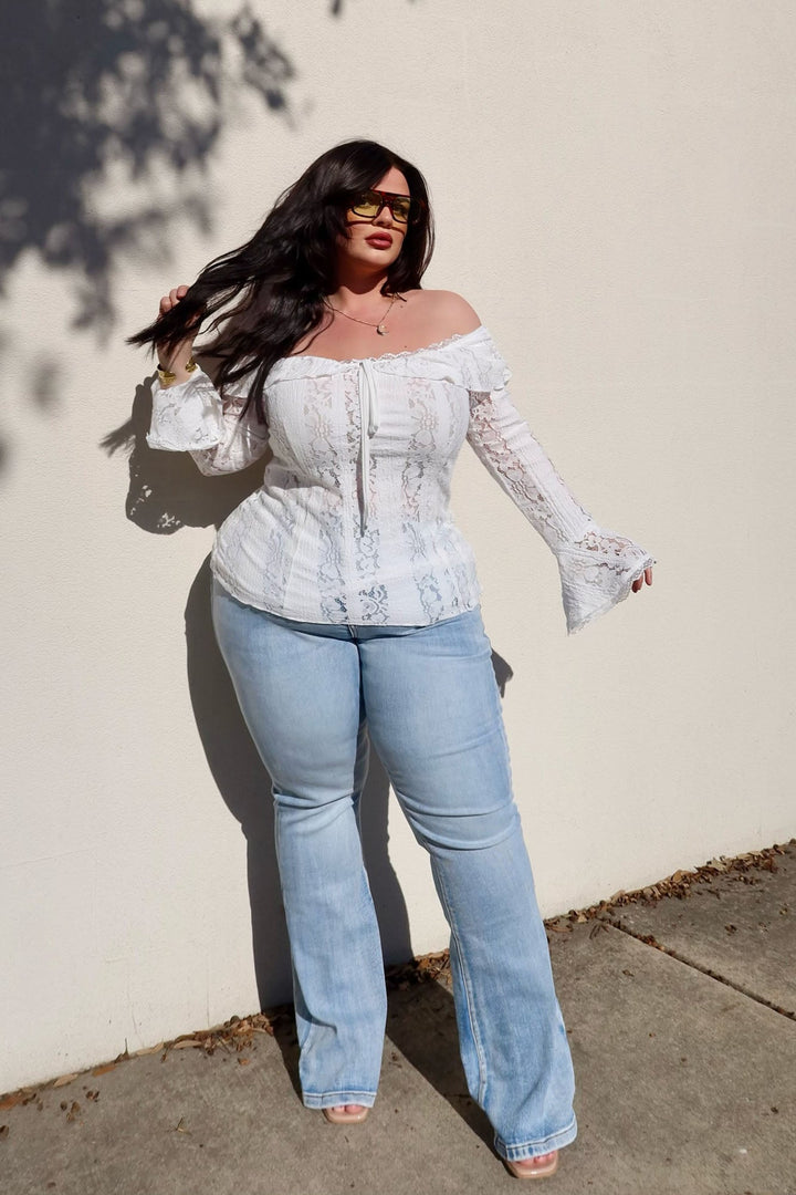 Adoring You Off Shoulder Lace Top - White