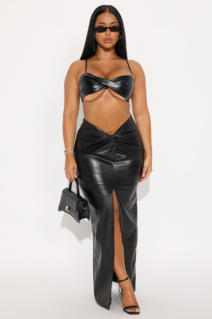 Available In Black And Brown. | Bra Top | Stretch | Adjustable Straps | Twist Detail | Faux Leather | Cropped | Self: 100% Polyester | Imported