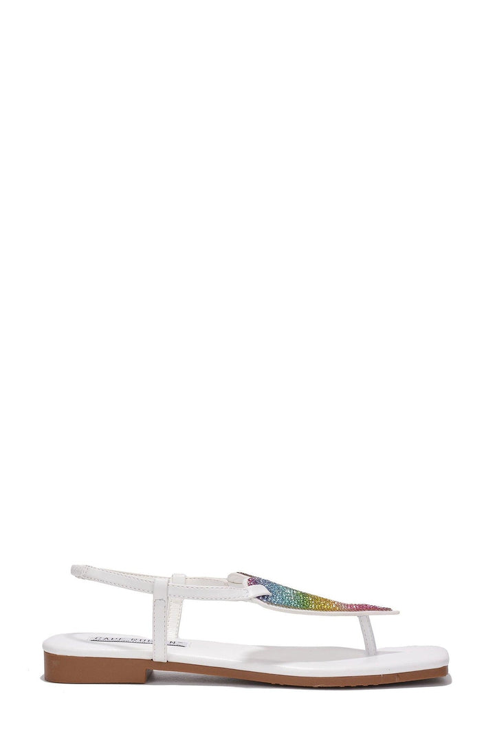 ALIEA - RAINBOW - SANDALS by CAPE ROBBIN square toe flat sandals rhinestone coated heart elastic backing wide foot friendly flat footbed Put your best foot forward in these stunning Aliea flat sandals. Perfect for a romantic night out,these sandals feature a lovely heart-shaped rhinestone coating that will add a touch of bling to your outfit. The black,pink,and rainbow colors are sure to make a statement,so you can spread the love wherever you go!