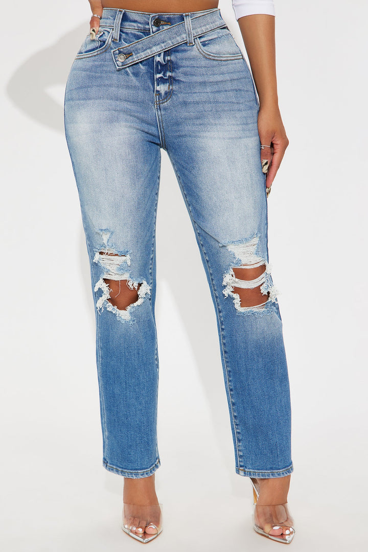 All Access Ripped Straight Leg Jeans - Medium Wash