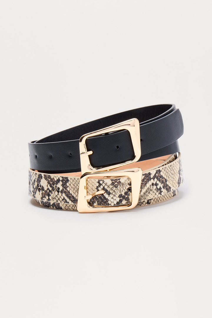 Available In Black/Grey. | Duo Belt Set | Faux Leather Material | Snake Print Design | Length: 43" | Imported