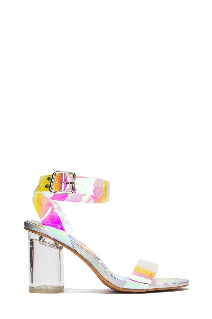 ALPA - HOLO - HEELS by CAPE ROBBIN Heel: 3 inch Ankle strap with buckle PU leather insole with memory foam cushioning for added comfort Cylinder block heel Round toe Transform your look with our chic block heels,available in eye-catching multi-colored holo silver or versatile beige options. These heels feature a trendy clear strap design that adds a contemporary twist. The multi-colored holo silver option showcases a holographic finish,reflecting light beautifully to create a dazzling effect,while the beige version offers a sleek,understated elegance that complements any outfit. The Alpa Round-Toe Clear Cylinder Block Ankle Buckle Strap Heels are perfect for adding a touch of modern elegance to everything from jeans to dresses.