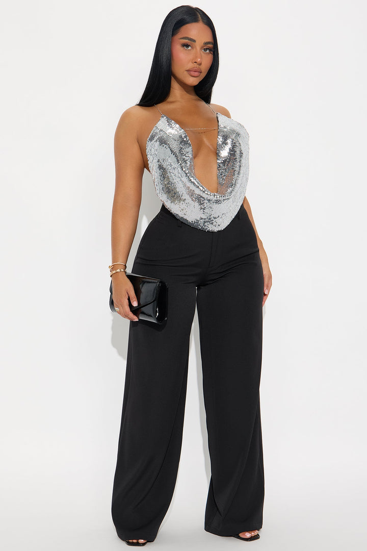 Always A Party Girl Chain Strap Sequin Top - Silver