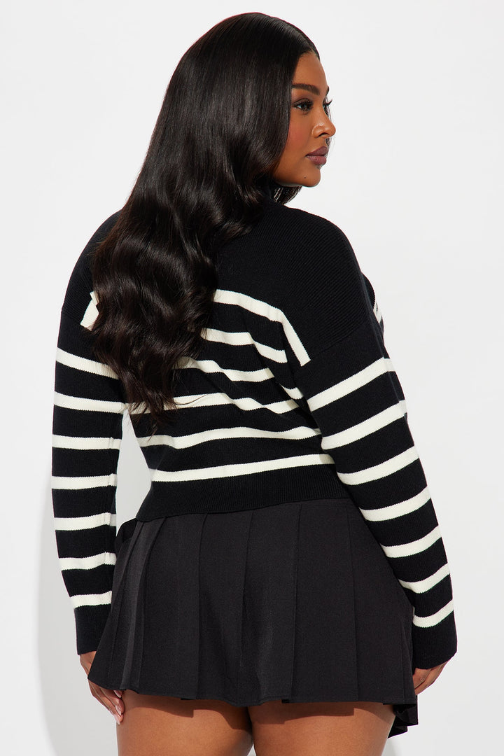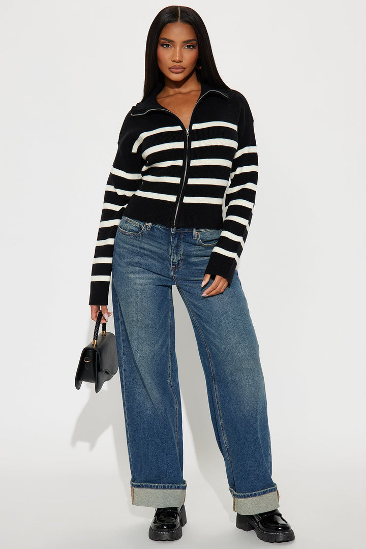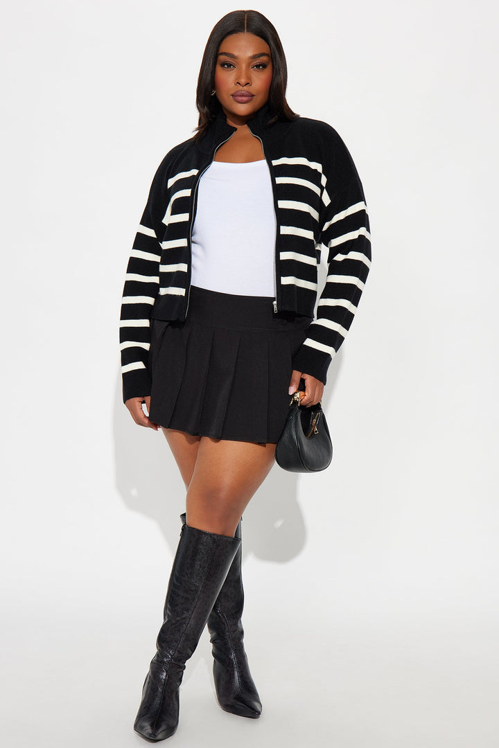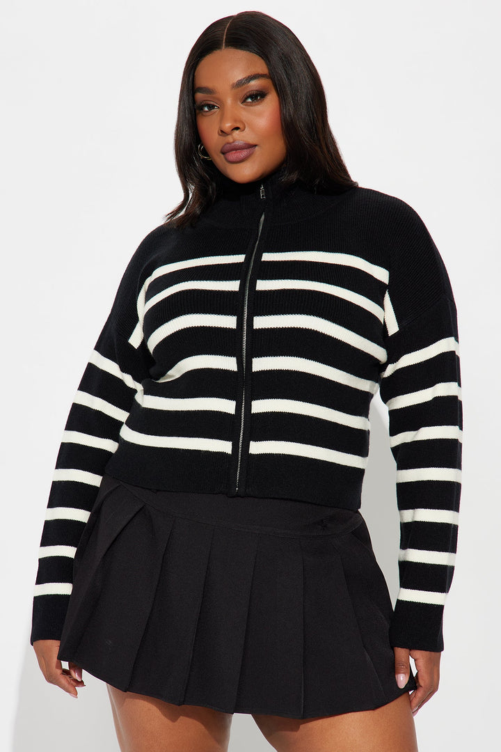 Available In Black/combo And Cream/combo. | Cardigan | Striped | Collared | Front Zip Closure | 57% Acrylic 28% Polyester 15% Nylon | Imported