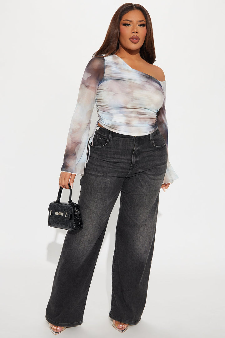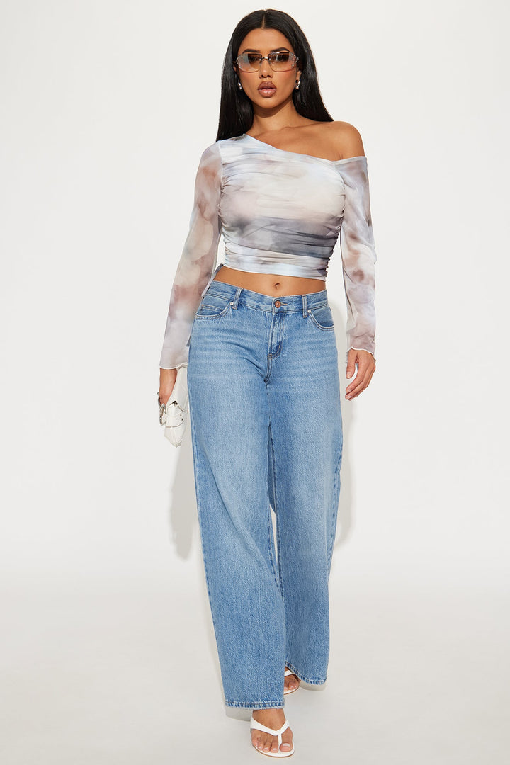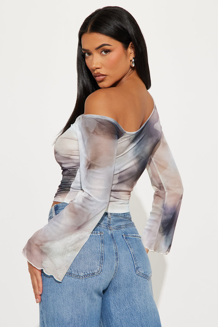 Amy Long Sleeve Mesh Off Shoulder Top - Multi Color