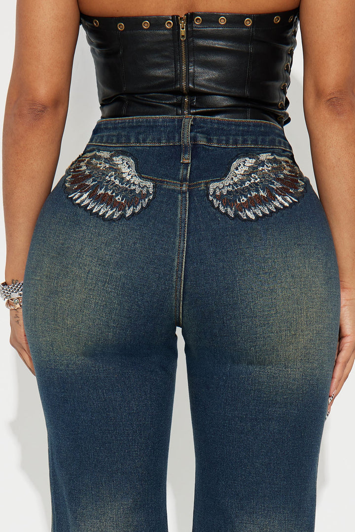 Angel Energy Embroidered Stretch Flare Jeans - Dark Wash