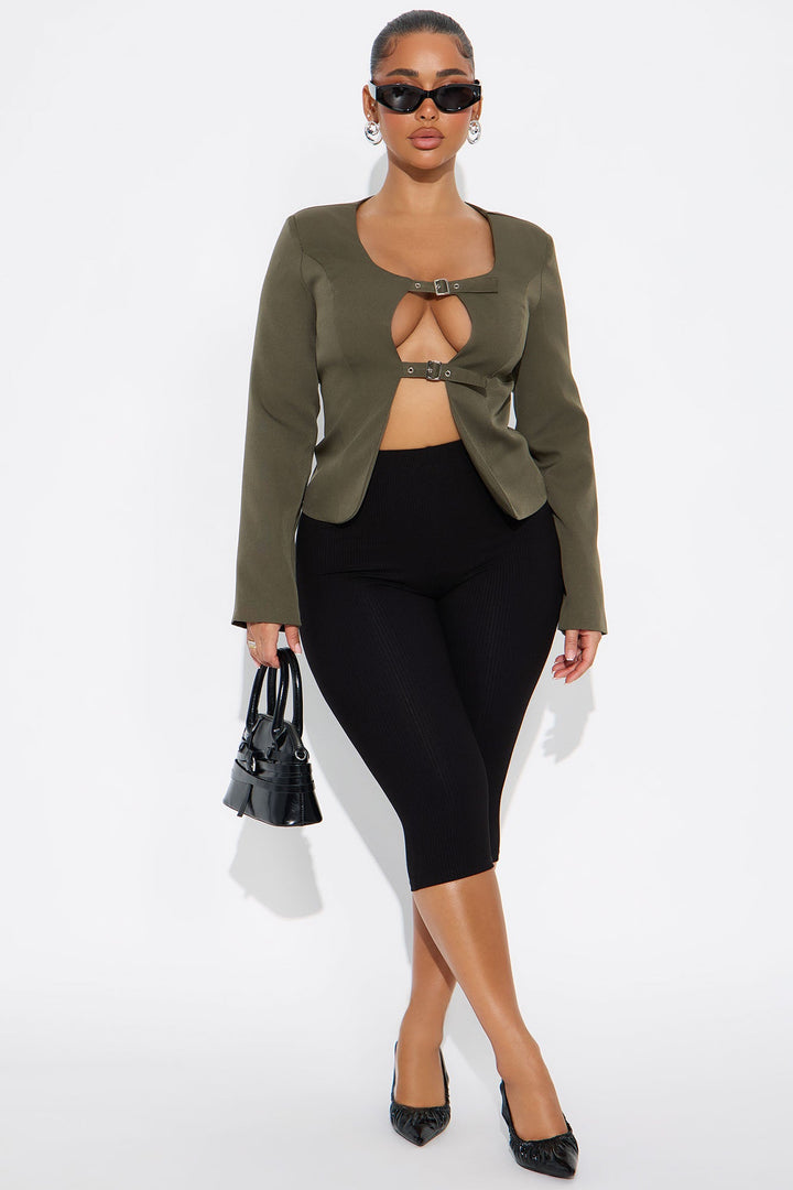 Available In Black And Olive. | Blouse | Scoop Neck | Padded Shoulder | Belted Detail | Fully Lined | Non Stretch | Self: 92%Polyester 8%Spandex | Lining: 100%Polyester | Imported