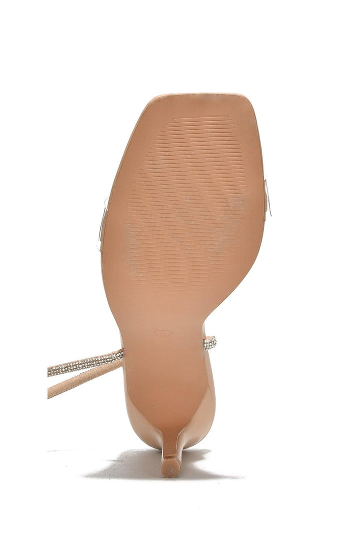 ANJELA - BEIGE - HEELS by CAPE ROBBIN open square toe PU hologram lightly cushioned footbed buckle closure rubber outsole lug sole rubber outsole The evening's forever young,and you shine brighter under the stars with Anjela. Features a strappy silhouette with rhinestone rope,a clear upper strap,and a sturdy heel for hours of dancing.