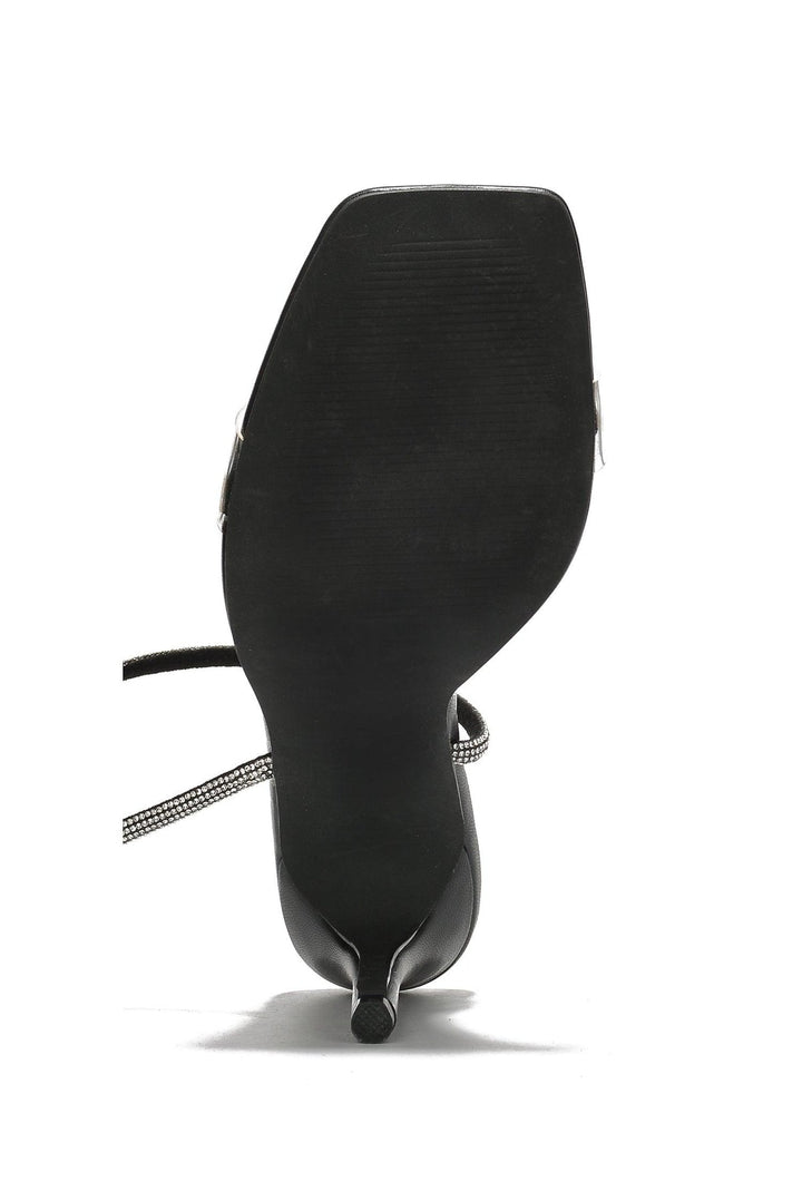 ANJELA - BLACK - HEELS by CAPE ROBBIN open square toe PU hologram lightly cushioned footbed buckle closure rubber outsole lug sole rubber outsole The evening's forever young,and you shine brighter under the stars with Anjela. Features a strappy silhouette with rhinestone rope,a clear upper strap,and a sturdy heel for hours of dancing.