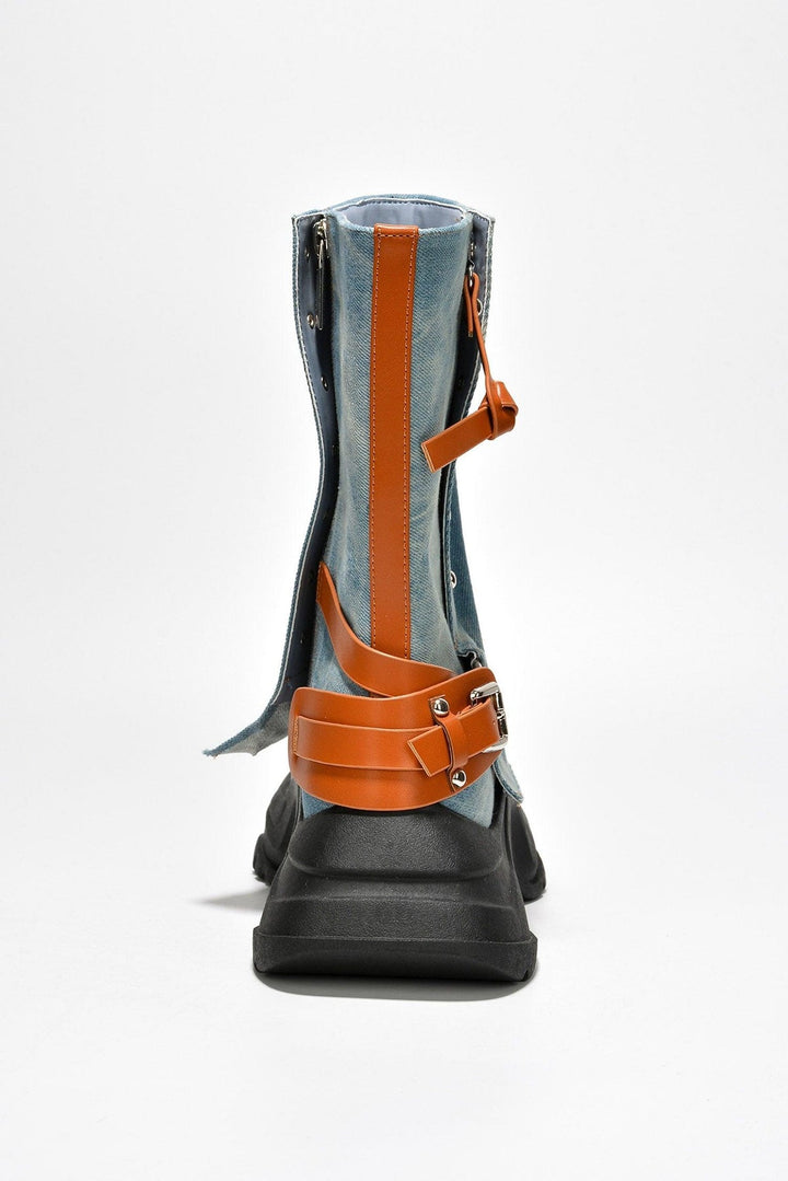 ANOTHERONE - DENIM - BOOTIES by CAPE ROBBIN round toe washed denim booties raw-cut PU stud trim 1.5 inch platform zipper closure decorative buckle 8 inch ankle boot These powerful ankle booties will take you on new adventures full of style and comfort. The raw-cut washed denim serves an undeniably casual chic look.