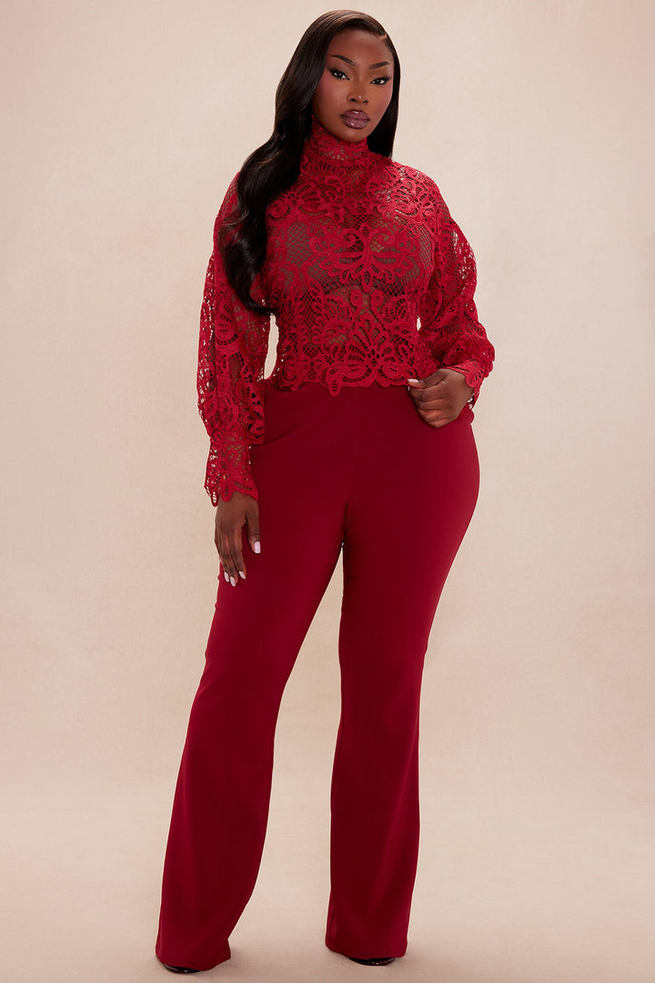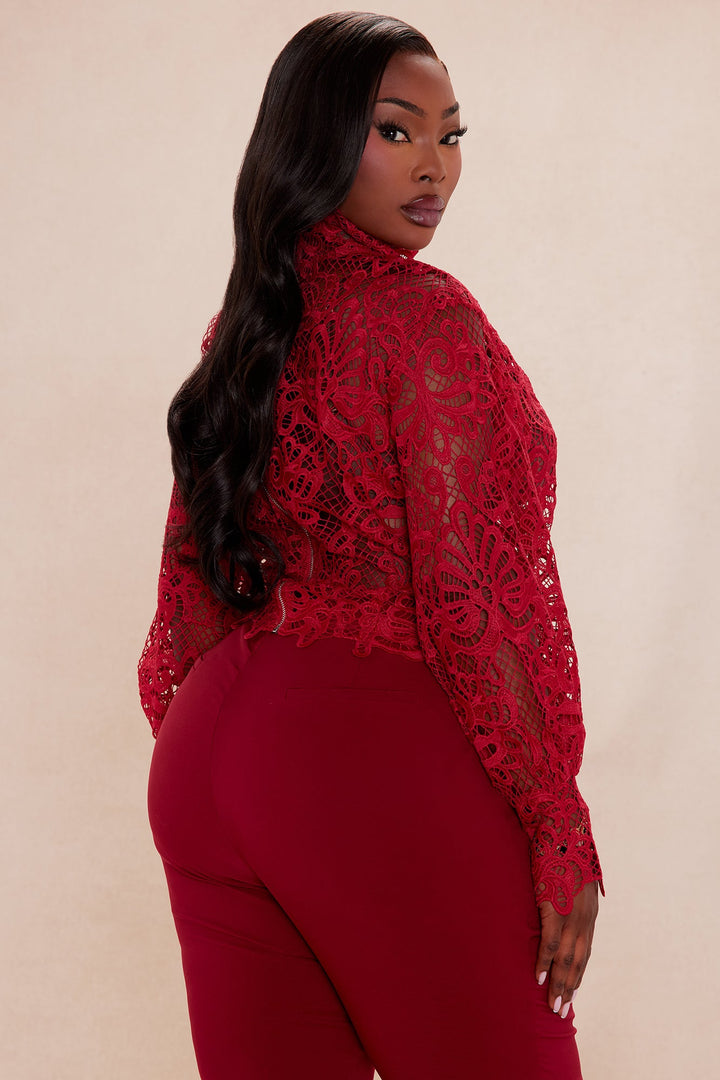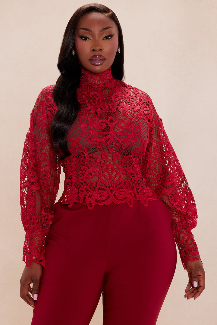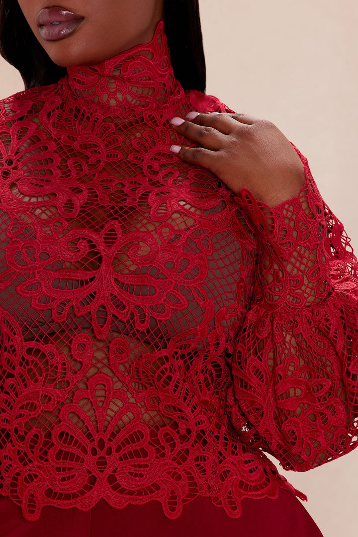 Available In Black, Off White, Olive And Red. | Lace Blouse | Mock Neck | Long Puff Sleeve | Back Zipper Closure | Non Stretch | 100% Polyester | Imported