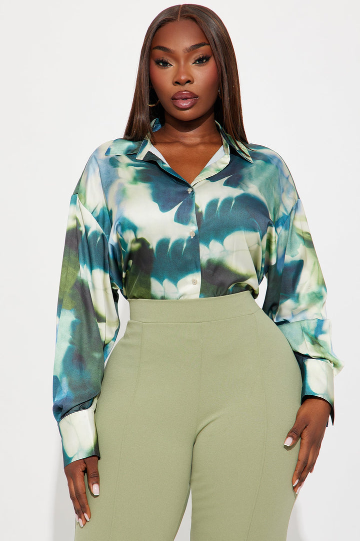 Artsy Moments Satin Shirt - Blue/combo