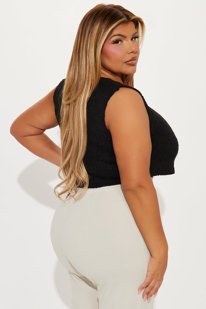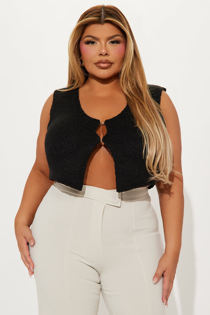 Available In Black And Taupe. | Sweater Vest Top | V-Neckline | Front Hook & Eye Closure | 64% Polyester , 36% Acrylic | Imported