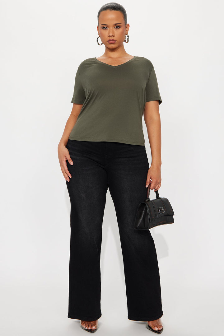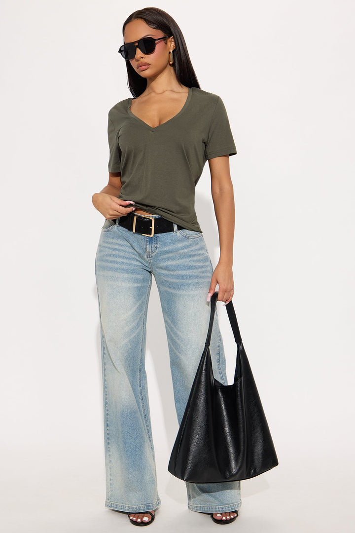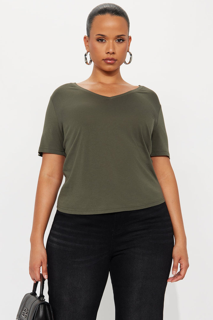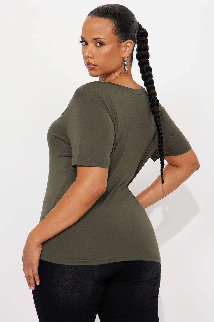 Ava V-Neck Tee - Military Green