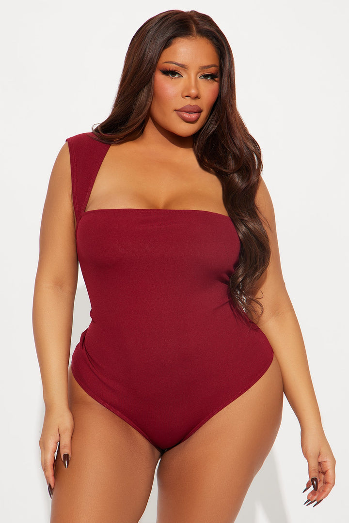 Aviana Square Neck Open Back Bodysuit - Burgundy