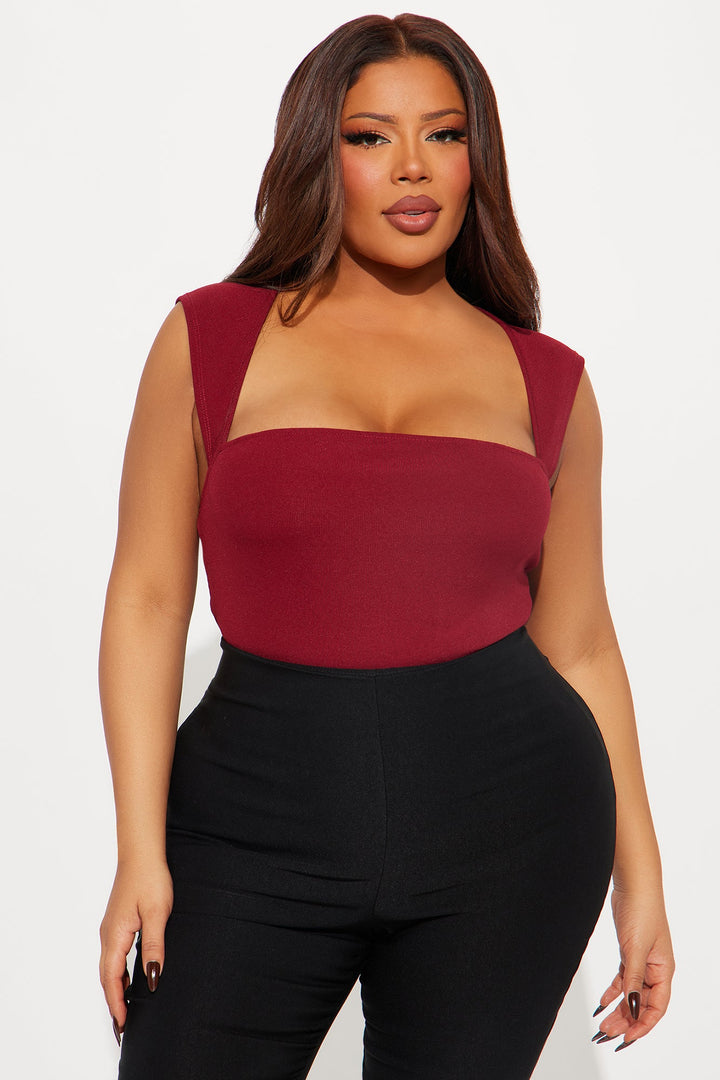 Aviana Square Neck Open Back Bodysuit - Burgundy