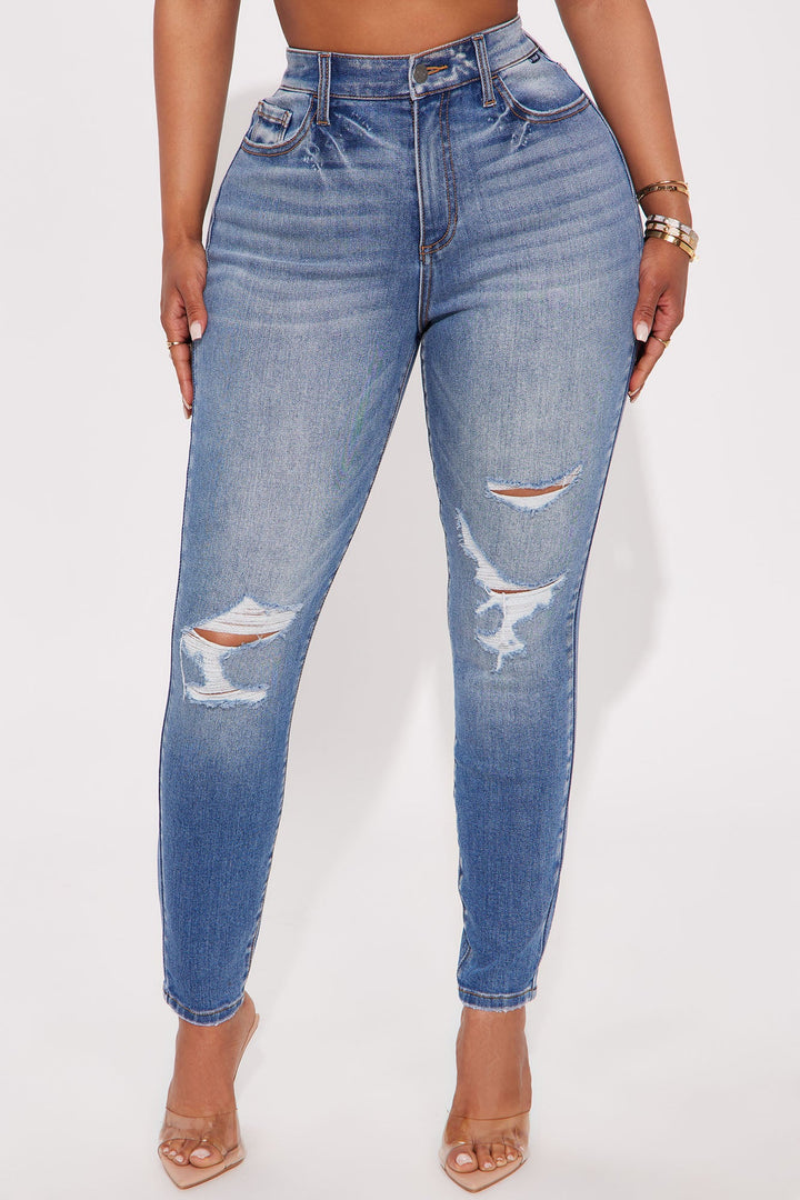 Azura High Rise Ripped Skinny Jeans - Medium Wash