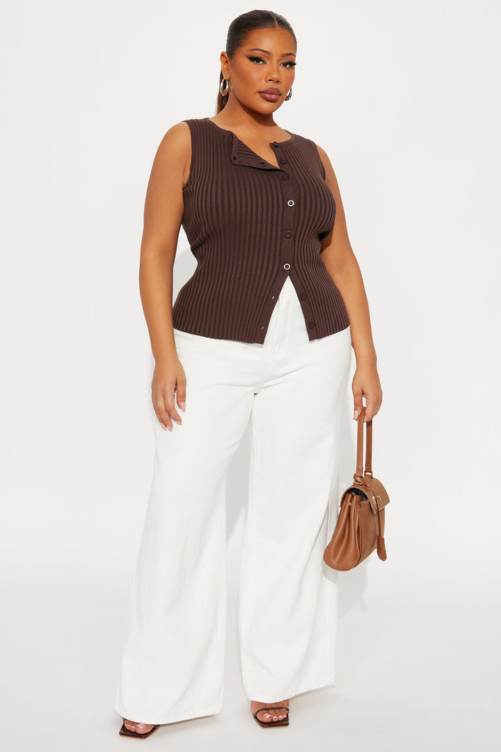 Available In Chocolate. | Sweater Top | Button Up | 80% Viscose 20% Nylon | Imported