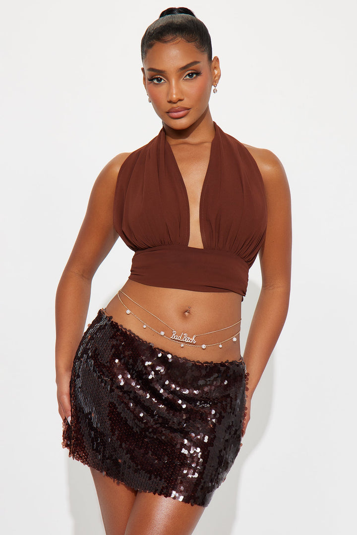 Available In Gold. | Belly Chain | Layered Design | Verbiage Detail | Rhinestone Detail | Lobster Clasp Closure | Length: 39" | Imported