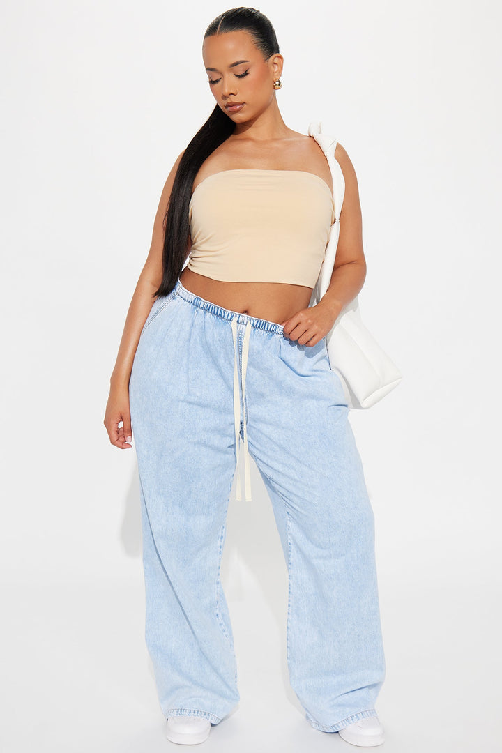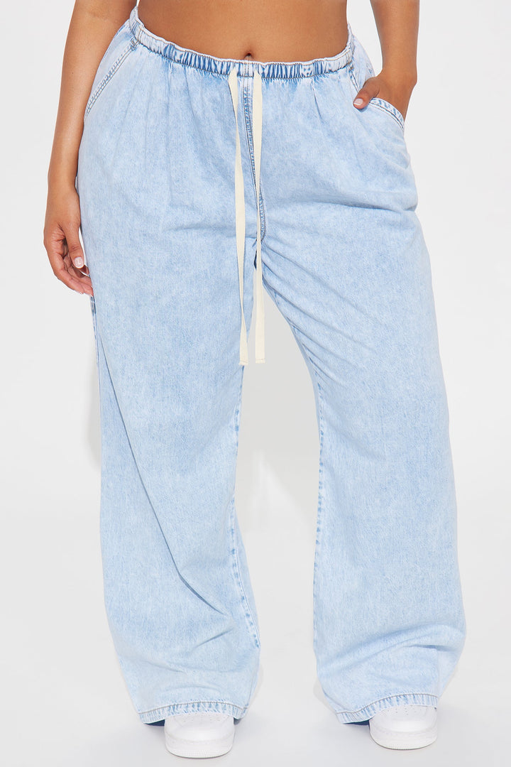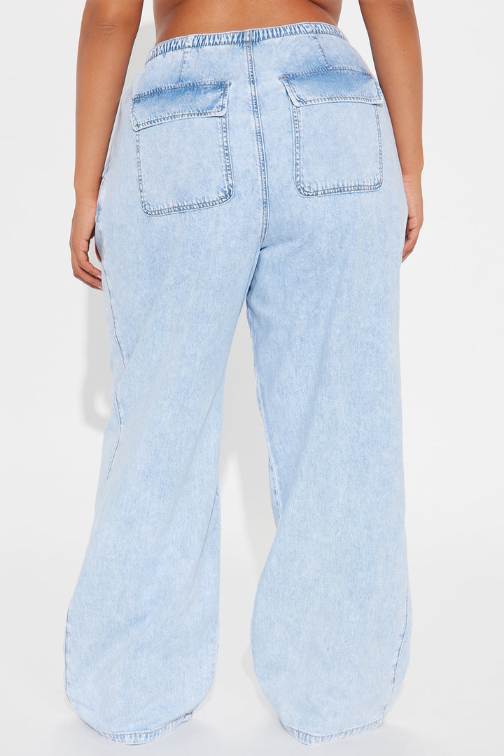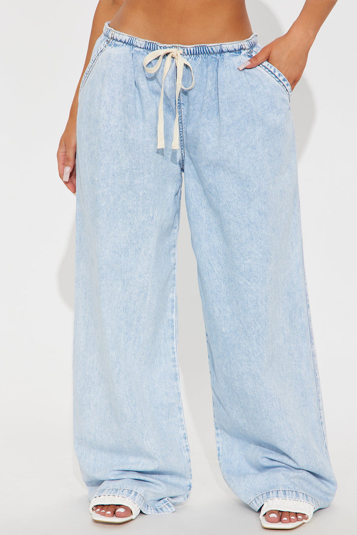 Baeside Tie Waist Wide Leg Jeans - Light Wash