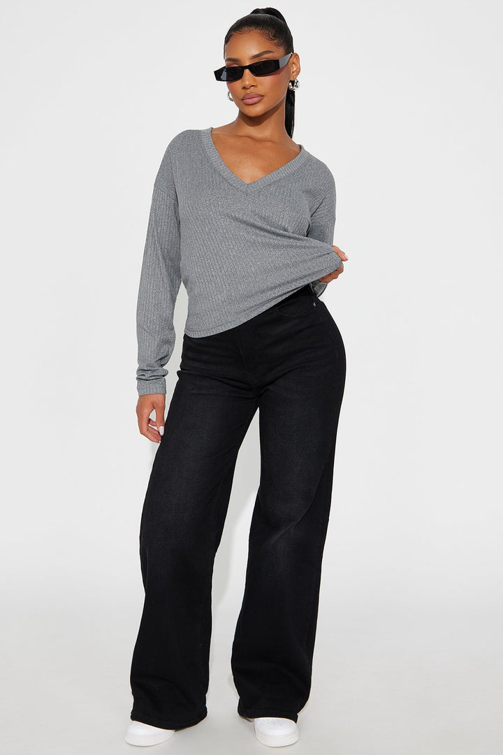 Bailey Basic V Neck Ribbed Top - Heather Grey
