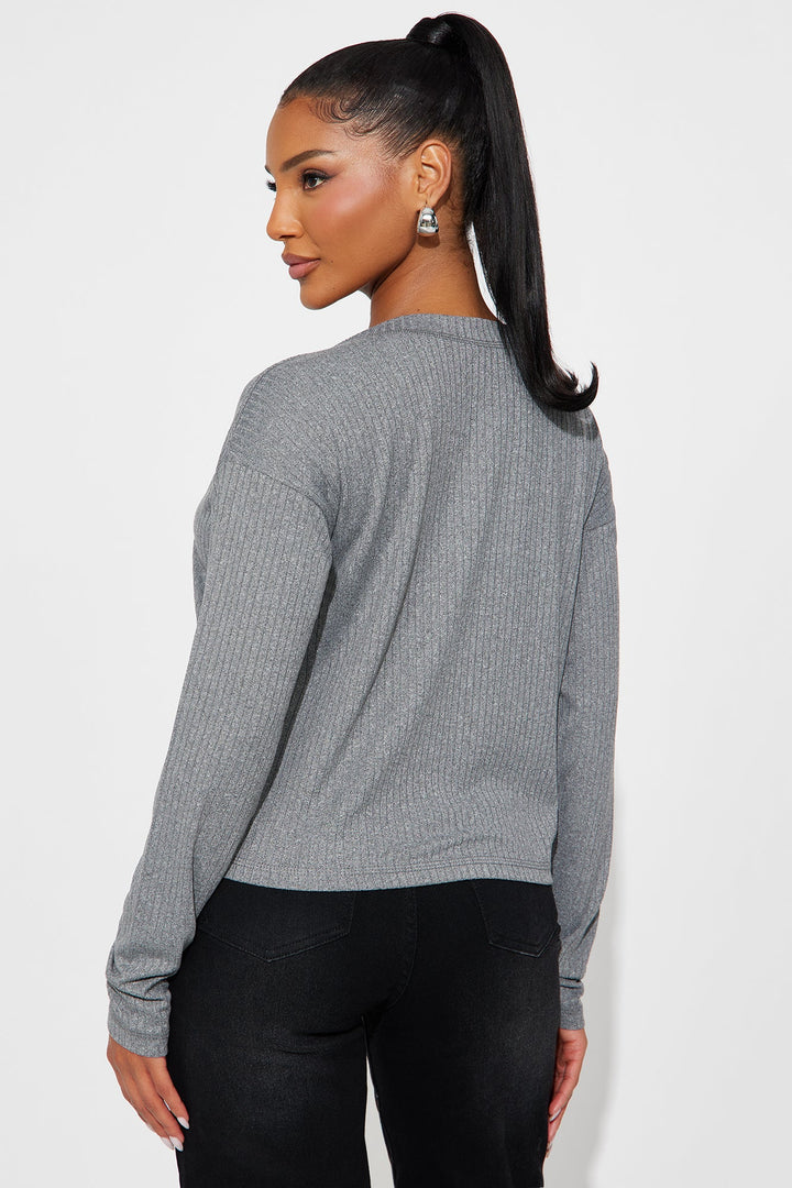 Bailey Basic V Neck Ribbed Top - Heather Grey