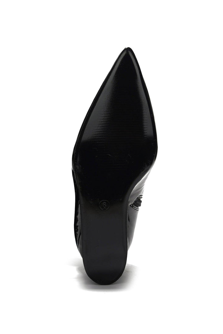 BAKU - BLACK - BOOTS by CAPE ROBBIN pointy toe cheetah teeth-inspired odd shaped heel patent elastic band thigh-high boots These odd-shaped heel boots don't bite,but they are a fetch! They're fierce and will definitely catch a lot of looks.