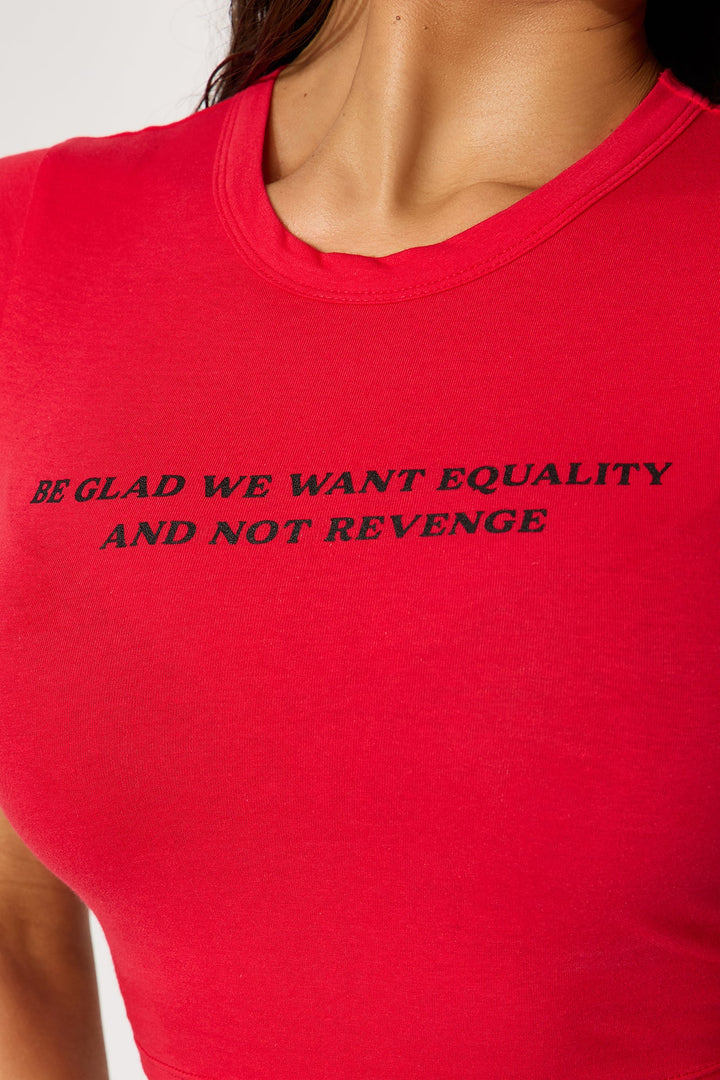 Available In Red. | Crew Neck | Short Sleeve | Front Screen | Cropped | Stretch | Due To The Printing Process A Difference In Saturation May Occur. Each Garment Is Unique | 95% Cotton 5% Spandex | Imported
