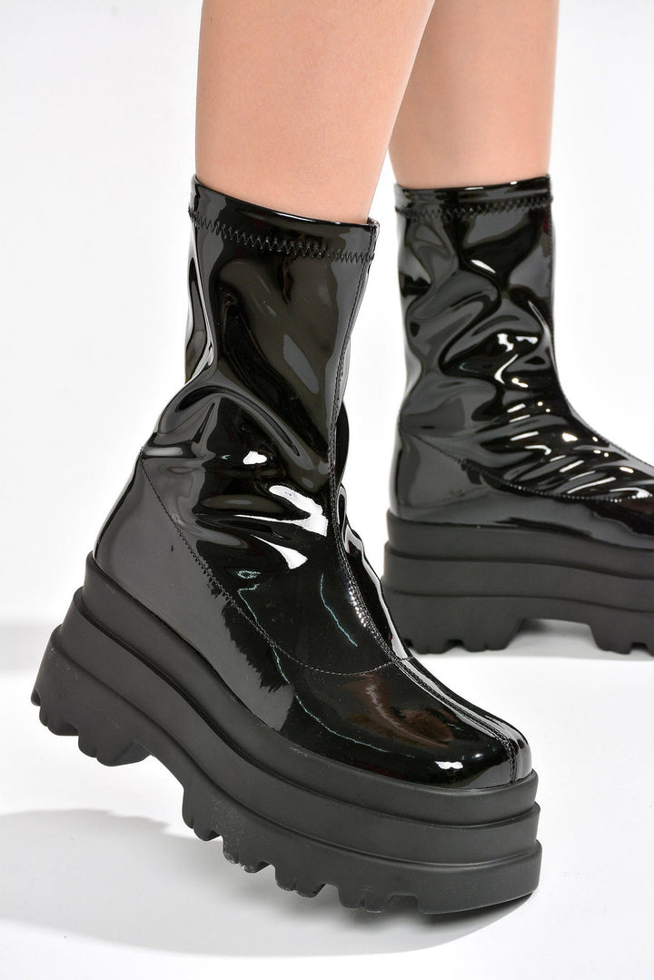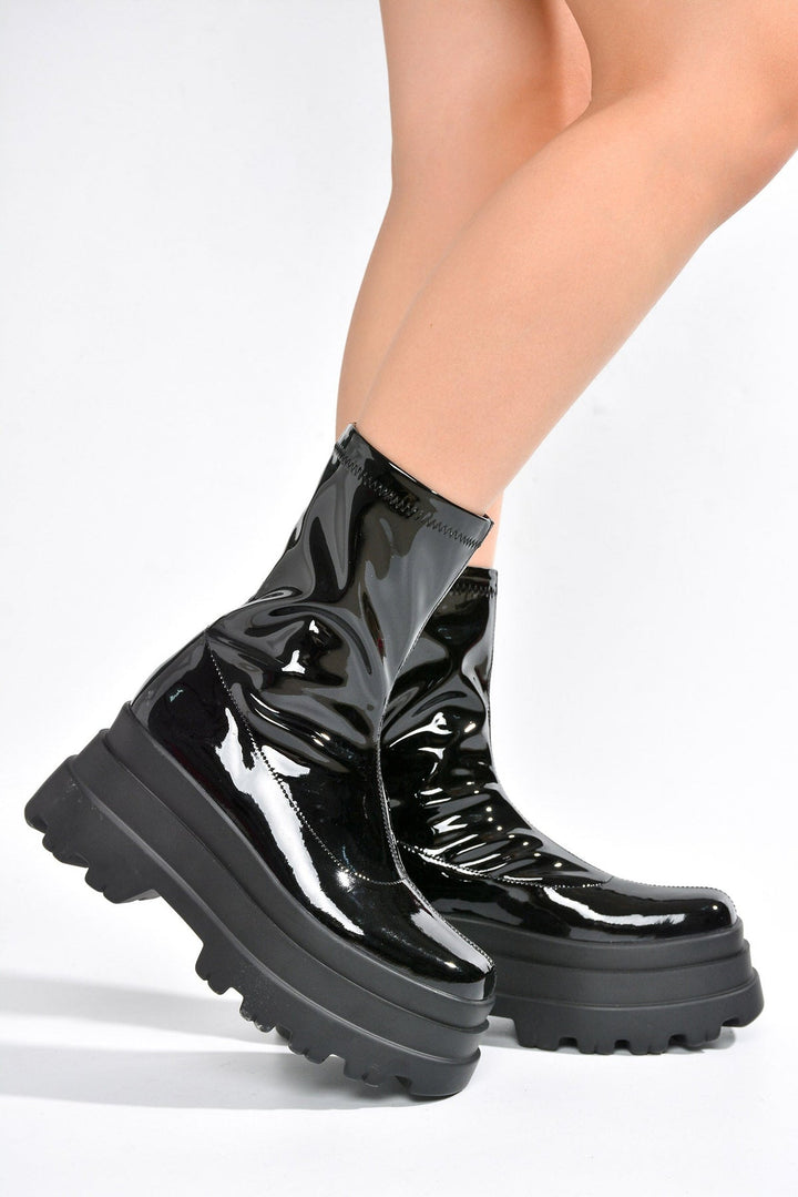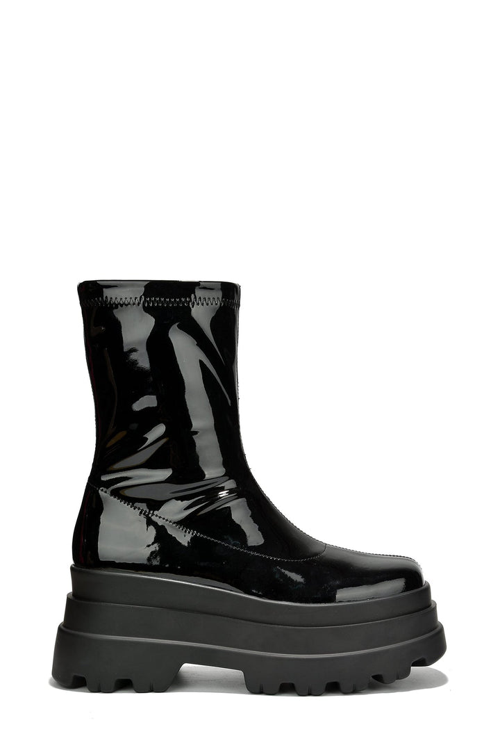BELUGA - BLACK - BOOTIES by CAPE ROBBIN square toe ankle boots lug sole 3.1 inch platform patent Stand tall in these 3 inch platform Beluga ankle boots! They're the perfect blend of fashion and function! Gain extra height with an extra dash of on-trend patent finish for a stylish and comfortable fit. Don't sleep on these booties!